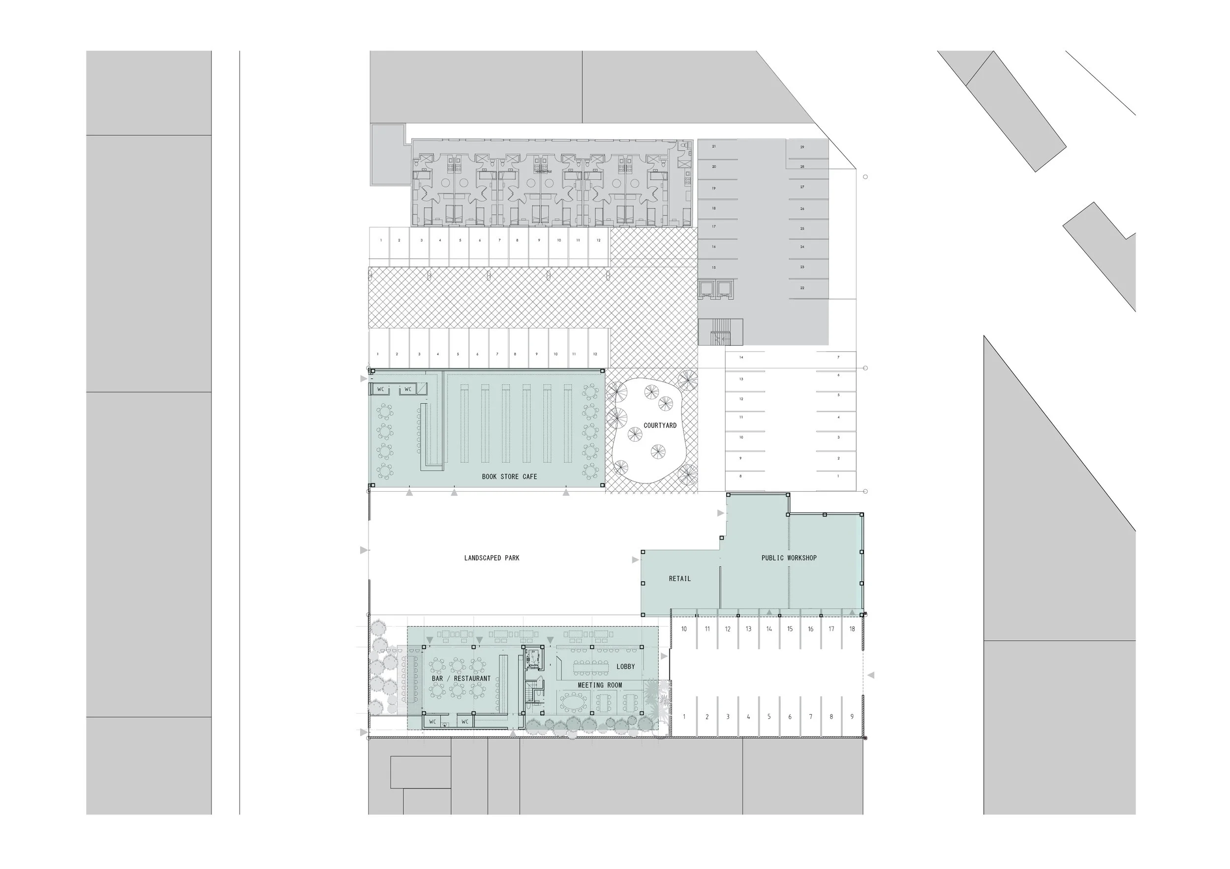 An urban regeneration project located in the creative downtown neighbourhood of Maboneng, the programme includes an apartment building, cafe, public workshop and landscaped areas. With the existing building stock made up from a collection of old manufacturing buildings, the proposal draws from the gritty aesthetic of its surrounds.